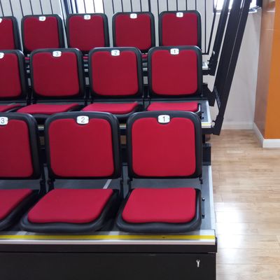 Das wirtschaftliche Wand befestigte System ist die typischste Anwendung von teleskopischen Sitzplätzen, in der die Zuschauertribünen in sich öffnen
