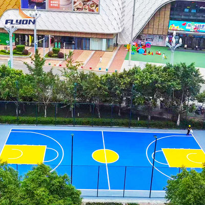 Die Flyon PU Sportböden eignen sich für den Einsatz im Innen- und Außenbereich auf Zement- und Asphaltoberflächen.Es ist ein perfektes Produkt für Sportanlagen, die einen Polyurethan-Sportplatz oder Tennisplatzboden benötigenDas Produkt ist so konzipiert, dass es den Spielern während sportlicher Aktivitäten maximalen Komfort und Sicherheit bietet.die sicherstellt, dass sie Stoßstoffe absorbiert und verhindert, dass sich Spieler verletzen.