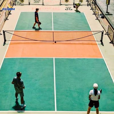 Die Grundschicht der Pickleball-Matte besteht aus 2 mm hochwertigem PVC, das eine hervorragende Haltbarkeit und eine stabile Spielfläche bietet.Das PVC-Material ist robust genug, um schweren Gebrauch zu bewältigen und wird sich nicht unter Druck verbiegen oder verzerren..