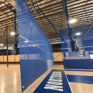 *Zwischen diesem Trennvorhangsystem und dem angrenzenden Trennvorhang oder der Wand ist ein Sicherheitsabstand von mindestens 50 cm einzuhalten.